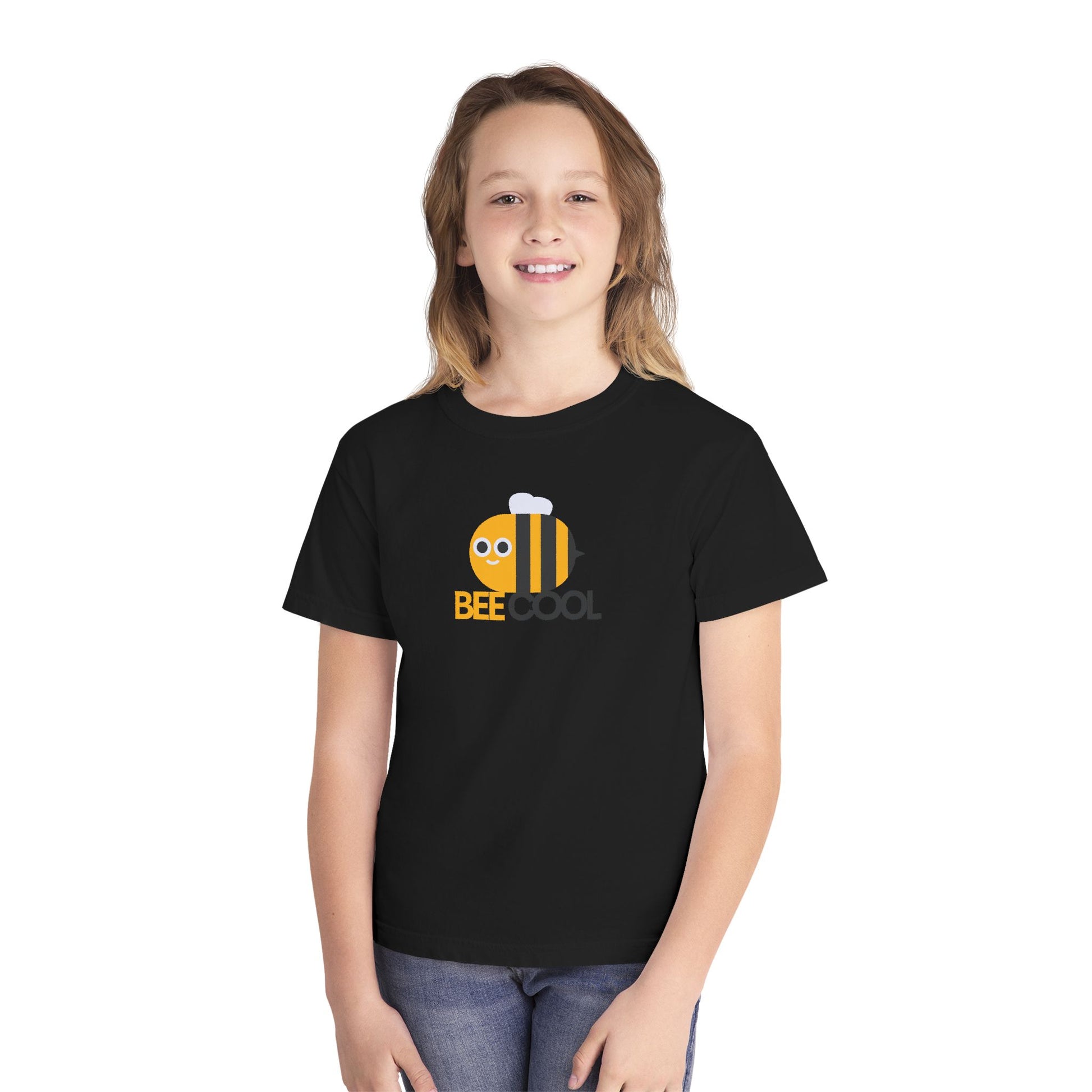 Bee Cool Youth T-Shirt — Cute Bumblebee Graphic Tee for Kids. This adorable tee gives off a playful and fun vibe, perfect for active and stylish kids.