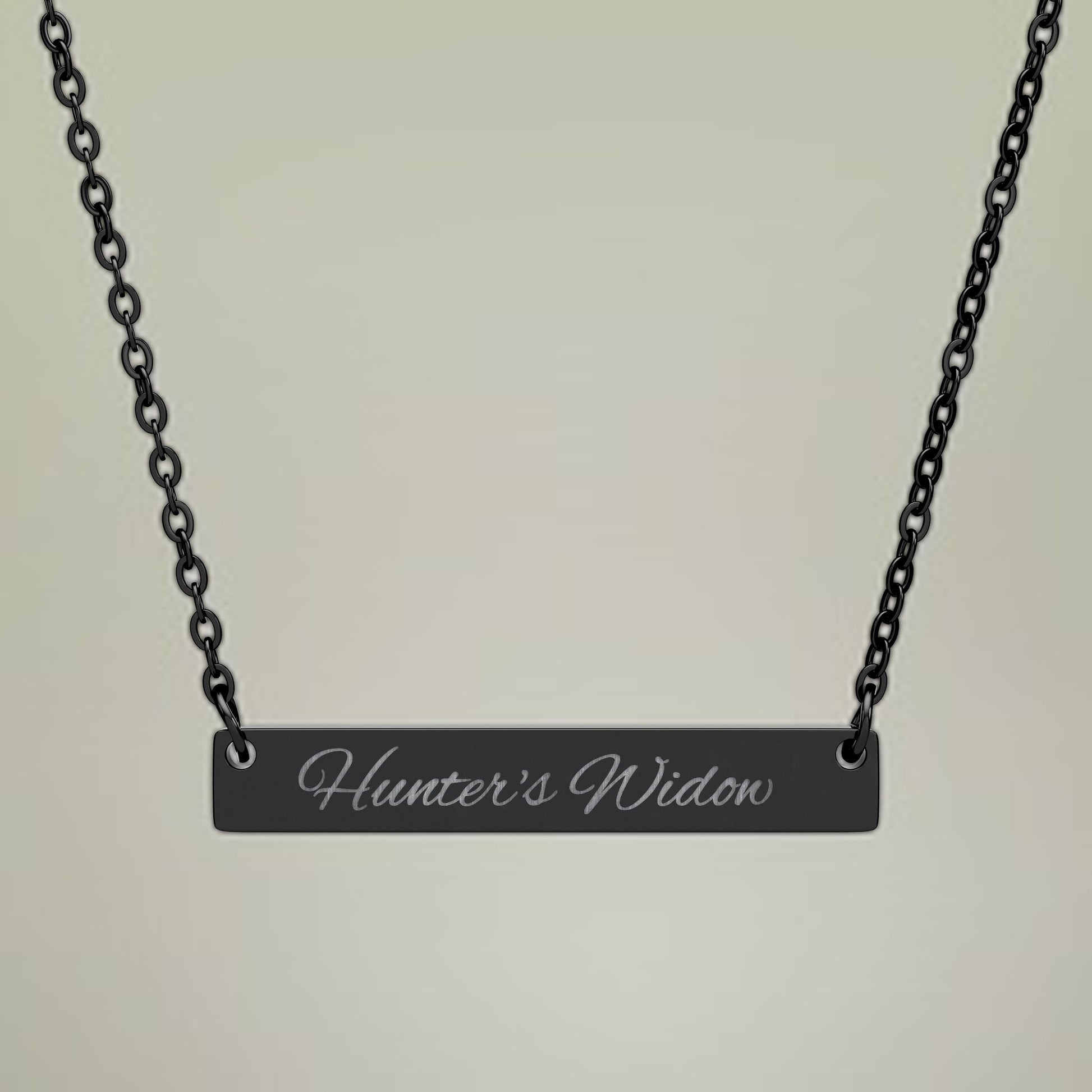 Sleek and elegant engraved horizontal bar necklace, perfect for those who love minimalist jewelry. This Hunter’s Widow pendant gives off a sophisticated vibe, making it suitable for everyday wear or special occasions. Ideal for adults who appreciate personalized accessories. Great for anniversaries, birthdays, and holidays.