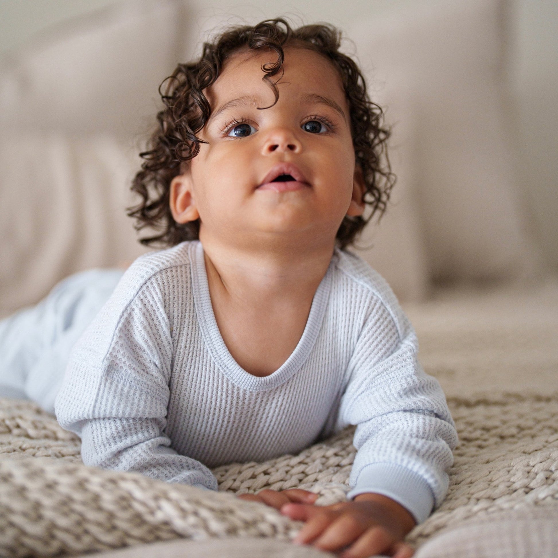 Our Thin Waffle Longsleeve is the ultimate in lightweight layering. Made from a soft, breathable waffle-weave fabric, you'll want to just wrap yourself in it. This top keeps your baby comfortable and stylish in a subdued, chic muted pastel palette.